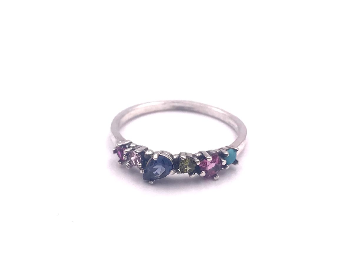 Anillo en plata de ley envejecido con nanogemas de diferentes colores, todas ellas engastadas. Da vida y color a tu mano. Diseñado y fabricado en España. Con posibilidad de modificaciones (consultar).