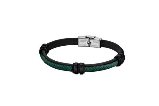 Pulsera Lotus Style LS1829 en acero con piel verde y negra