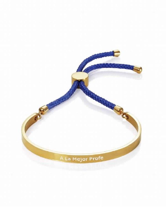 Pulsera viceroy mujer chapado dorado con frase A la Mejor Profe. En acero y cordón azul con cierre ajustable. Libreta de regalo.