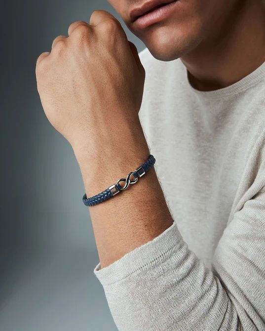 Pulsera de la marca Viceroy, fabricada en acero inoxidable, con brazalete trenzado en color azul y motivo central en forma de infinito. Una pulsera versátil y moderna, pensada para quienes valoran el estilo y los detalles con profundidad.