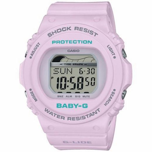 Reloj Baby-G Casio lila resistente a golpes con indicador de mareas