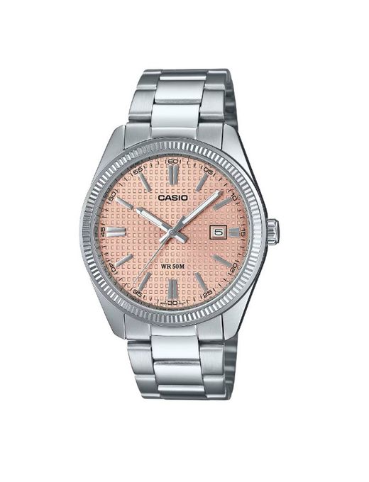 Reloj Casio Unisex MTP-1302PE esfera con textura en color maquillaje