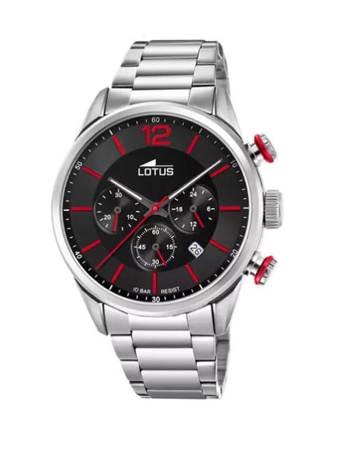 Reloj de hombre Lotus en acero inoxidable. Cronógrafo con esfera negra y detalles en color rojo. Desprende elegancia, un reloj para todo llevar.