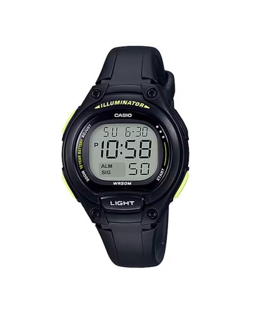 Reloj Digital Casio de niñ@, en color negro con detalles en verde. Muy completo con diversas funciones como alarma, cronómetro con patalla LCD de fácil lectura y retroiluminación LED.