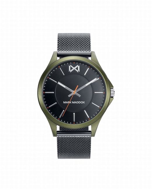 Reloj Mark Maddox con caja de aluminio verde y esterilla de acero Ip negra