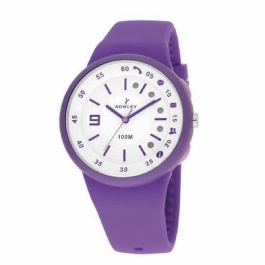 Reloj nowley unisex con bluetooth, avisador de varias funciones, correa lila. Compatible con IOS y Android.