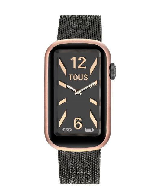 Reloj smartwatch Tous de la colección T-Band, fabricado con brazalete de acero inoxidable IPG negro con caja de aluminio con color IPGR rosa. Lo mejor de este modelo es que puede ser usado sin necesidad de teléfono móvil. Un reloj muy cómodo y práctico para tu día a día.