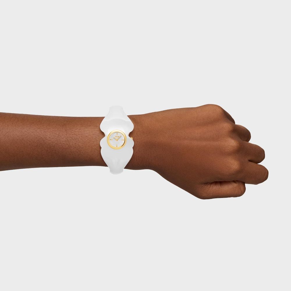 Reloj Tous de la colección Bear Folks, fabricado en policarbonato de color blanco. Un reloj tipo esclava abierta, para una mayor comodidad. Una declaración de amor al oso mas mítico de todos TOUS, que este año cumple 40 años de su lanzamiento. Este modelo es una Talla M