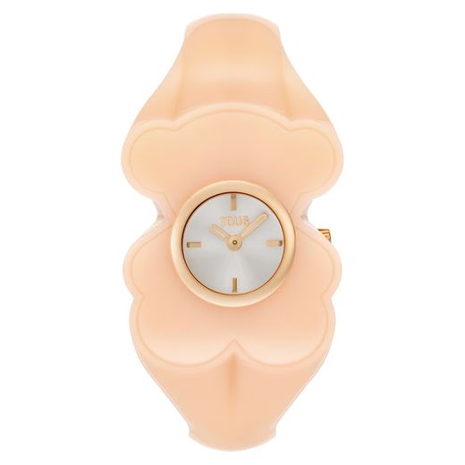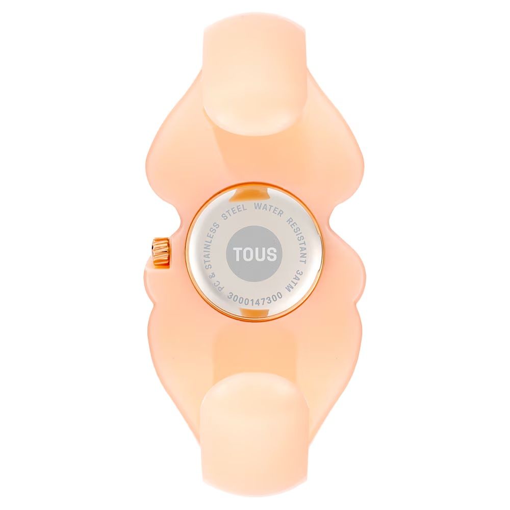 Reloj Tous de la colección Bear Folks, fabricado en policarbonato de color rosa o también llamado maquillaje o nude. Un reloj tipo esclava abierta, para una mayor comodidad. Una declaración de amor al oso mas mítico de todos TOUS, que este año cumple 40 años de su lanzamiento. Este modelo es una Talla M