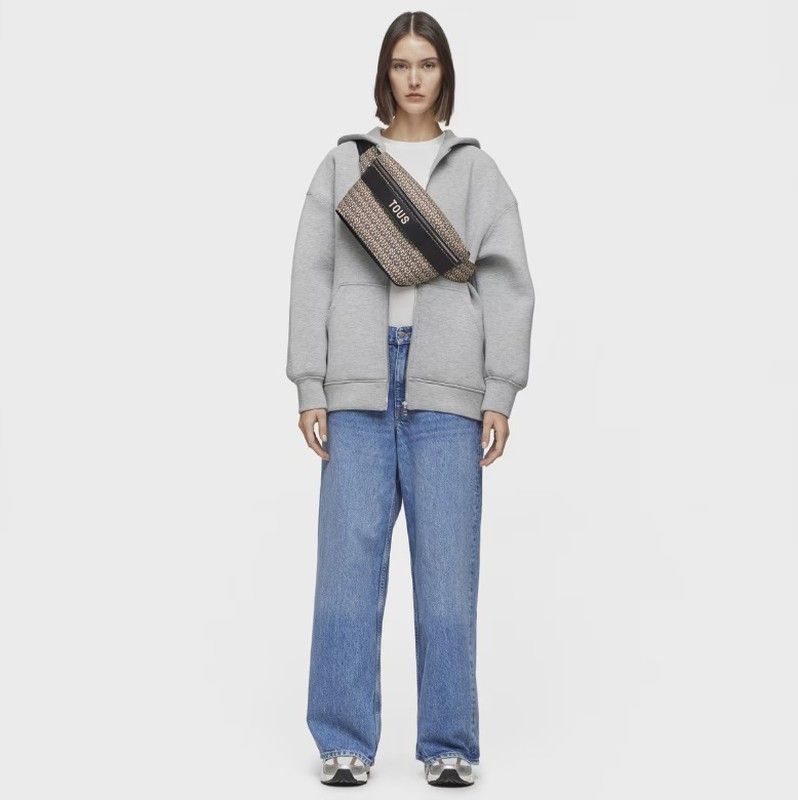 Riñonera Tous de la colección Manifesto, fabricada en vinilo con detalles en piel sintética color gris oscuro. Cerrada con cremallera y asa ajustable. Unisex y adaptable.